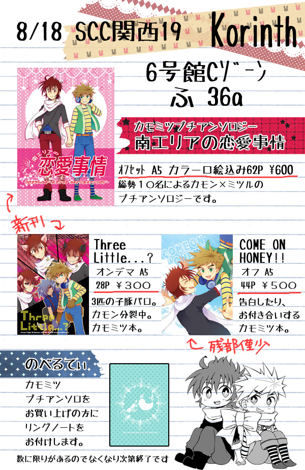 内容的にはカモンがミツルへの気持ちを自覚したり、お付き合い始めたりの甘いんだかほのぼのなんだかギャグなんだか自分でもわかりません。ゲストにしえんさんをお呼びしてます!